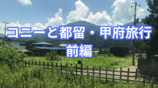 コニーと一緒に電車を乗り継いで都留と甲府に行ってきました。恩師との再会、怖いホテルなど密度の高い父子旅の1日目。
